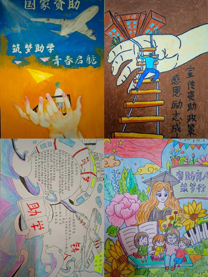 活动通知一经发出就得到学生们积极响应,他们通过手绘或电子版海报的形式将资助政策化抽象为具象,让政策跃然于纸张上,生动形象地展示出资助政策的魅力,明确传达出资助政策及要求。同时让学生们对政策有了更深刻的理解,从侧面积极引导学生确立正确的价值观取向。