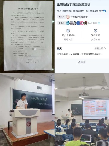 本次活动采取线上和线下相结合的方式,组织学生认真学习生源地信用助学贷款相关政策,重点讲解“国开行”生源地信用助学贷款政策和申请贷款流程,宣传征信知识,并倡导学生树立正确的消费观,提高风险意识和法律意识,拒绝不良贷款。此外,学院将《生源地信用助学贷款还款流程》和《生源地助学贷款承诺书》发放到每一位贷款毕业生手中,对学生进行诚信教育谈话,签订《承诺书》,引导学生认真在“国家开发银行生源地贷款管理系统”中完成信息确认工作,并向学生倡议:人生之路,从诚信起步,要像珍惜自己的生命一样维护个人的信用记录。贷款毕业生们表示,将来一定恪守信用,按时还贷,向社会展现计算机学院学子的良好品质。