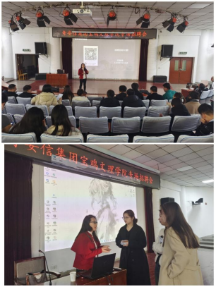 招聘会上,奇安信科技集团股份有限公司基地管理部区经理闫军霞介绍了公司的规模现状、运营情况、主要业务和公司环境等基本情况,讲解了公司的人才需求和薪酬体系。并就同学们关心的相关问题为同学们答疑解惑,耐心解答了同学们针对就业实习方面提出的各种问题,并希望能够通过招聘会,吸收更多优秀的毕业生与企业共同发展。通过宣讲和现场交流,学生对奇安信集团有了更深入的了解。