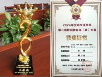 5月31日上午,宝鸡文理学院第三届校园健身操(舞)大赛于高新校区体育馆圆满落幕。经过激烈的角逐,我院代表队在此次大赛中夺得团体项目三等奖、街舞项目第三名的优异成绩。