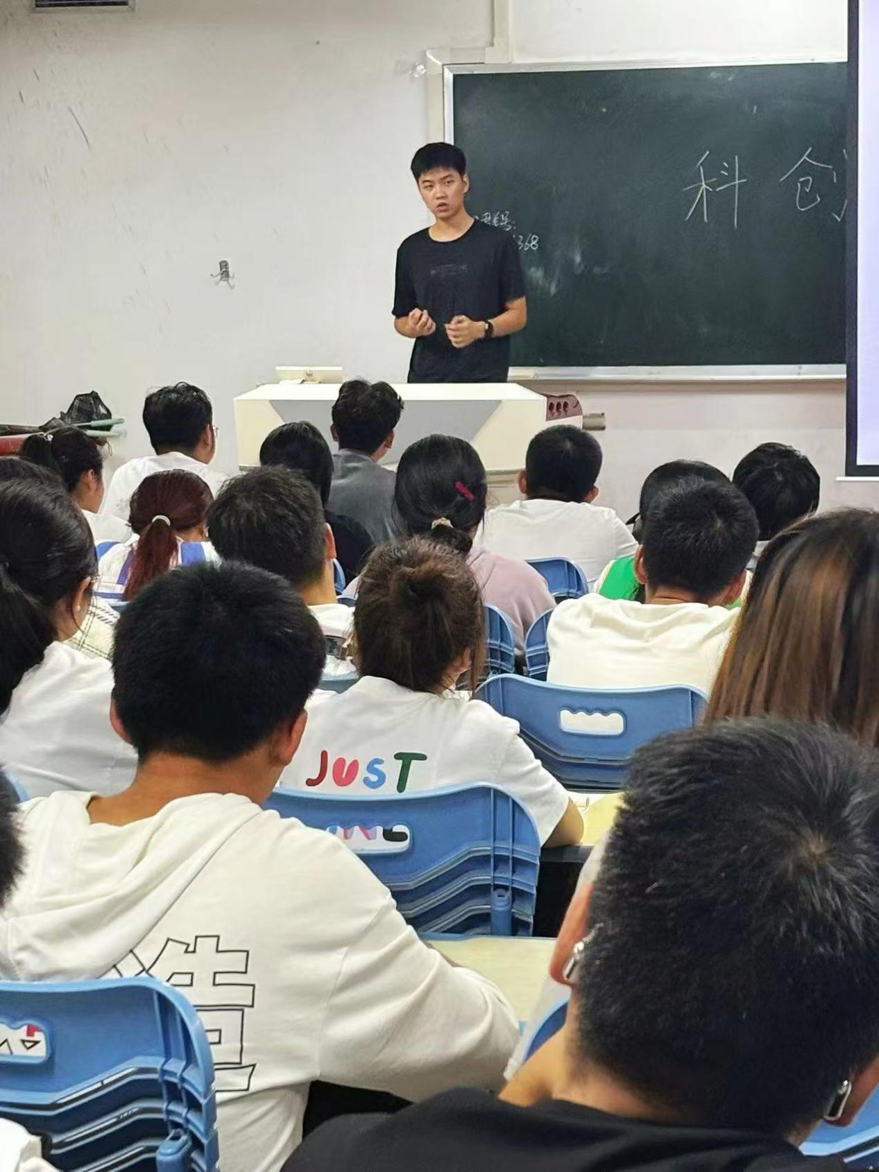为了更好的帮助大一新生尽快的适应大学的学习环境,9月25日晚,由24级人工智能1班、2班的两位班主任朱丽叶、樊攀老师联合发起,为两个班新生成功举办了一场以“科创引领,学业并进”为主题的优秀科创人物经验分享会。该会旨在激发学生对科技创新的热情,并通过优秀学长学姐的亲身经历,为同学们提供宝贵的学习与成长经验。会议由2024级人工智能1班科创委员高宇妍同学主持。