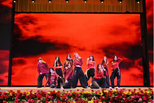 互动环节中,同学们、老师们和小朋友们一同参加“抢凳子”游戏,将现场气氛推向高潮。晚会在舞蹈《相亲相爱》的欢乐旋律中落下帷幕。整场晚会高潮迭起、精彩纷呈,现场掌声、欢呼声经久不息。