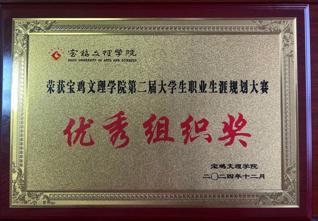 12月23日,宝鸡文理学院 “金标尺杯” 第二届大学生职业生涯规划大赛决赛圆满落幕。我院学生在此次大赛中表现卓越,周桥脱颖而出,荣获二等奖;李月阳亦表现出色,喜获三等奖;齐永沛和代昭凭借精彩展示荣获优秀奖。此外,学院凭借出色的组织工作,荣获 “优秀组织单位” 荣誉称号。