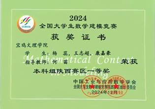 全国大学生数学建模竞赛是由教育部高等教育司和中国工业与应用数学学会主办的科技活动,目的在于激励大学生学习数学的积极性、提高大学生建立数学模型和运用计算机技术解决实际问题的综合能力。通过参赛,拓宽了我校学生的知识面,培养了学生的创新精神及合作意识。(计算机学院 文、图/何苗 审核/李亚峰)