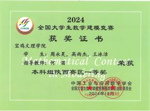 我院2022级人工智能专业周永昊、王冰洁、刘星愿、马翌硕、巨景蓉、吕嘉婧,2022级计算机科学与技术专业杨婉琦,2022级物联网工程专业孙瑞芝,2022级软件工程专业韩梦云、李聪聪十位同学在2024年全国大学生数学建模竞赛中分别荣获本科组陕西赛区一、二等奖。周永昊同学应邀参加了全国大学生数学建模竞赛陕西赛区2024颁奖仪式暨2025动员大会。