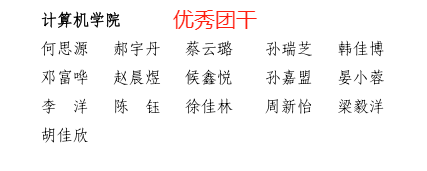 按照《关于做好2024年度“五四”评优工作的通知》(宝文理院团字〔2025〕7号)精神,通过团员教育评议、组织推荐、资格审查、述职答辩、综合评定等环节,学院参与了2024年度共青团工作先进集体和先进个人评选活动。经校团委研究决定,学院喜获“2024年度共青团单项工作先进集体”荣誉称号,2021级软件工程1班团支部等13个团支部荣获“2024年度五四红旗团支部”荣誉称号,2023级计算机科学与技术1班吴鑫源荣获“2024年度十大活力团支部书记”荣誉称号,22级人工智能2班李月阳荣获“2024年度十佳共青团员”荣誉称号,22计算机科学与技术2班周向远荣获“2024年度十佳共青团干部”荣誉称号,22计算机科学与技术2班何思源等16名同学荣获“2024年度优秀共青团干部”荣誉称号,23人工智能1班郭帅等24名同学荣获“2024年度优秀共青团员”荣誉称号。