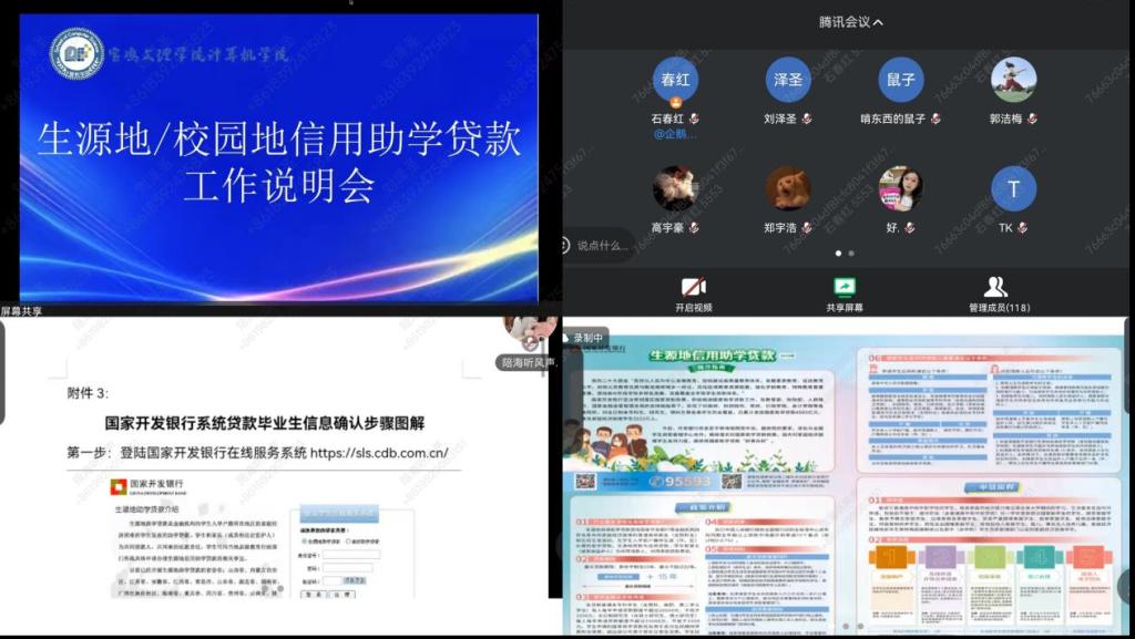 6月12日晚,学院通过腾讯会议举办生源地及校园地信用助学贷款政策宣讲会,学院资助辅导员与300余名受助学生参会,为学子点亮求学明灯。
