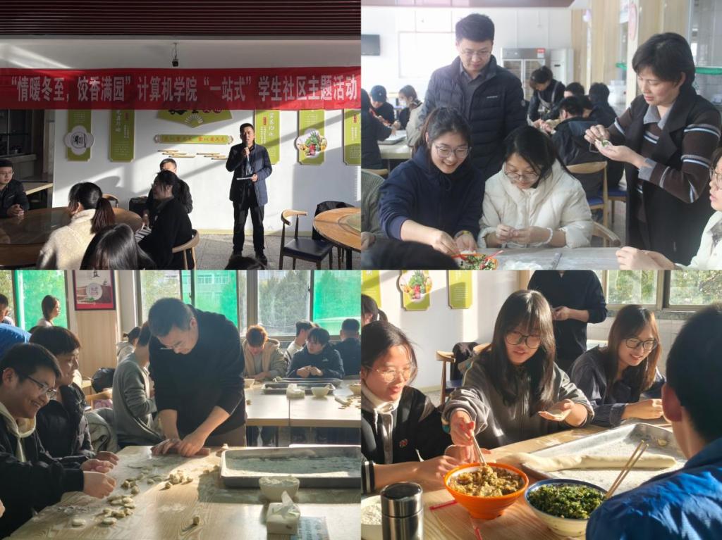 12月19日下午,计算机学院在石鼓校区二号餐厅开展“情暖冬至·饺香满园”“一站式”学生社区主题活动。百余位师生齐聚一堂包饺子话家常,在欢声笑语中共叙师生情谊。学院党委书记王林参加活动并为师生送上美好祝福。