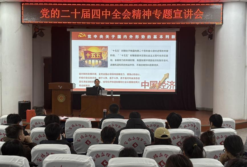 宣讲会前,学院党委书记王林传达了学校2025年下半年基层党建工作会议精神。他重点解读了关于强化政治引领、深化思想引领、坚持强基固本、锚定“一融双高”、狠抓正风肃纪的五点要求。他结合学院实际强调,全院要深刻领会讲话精神实质,切实把思想和行动统一到学校党委决策部署上来,以高质量党建引领学院学科建设、人才培养、科研创新等各项事业高质量发展。