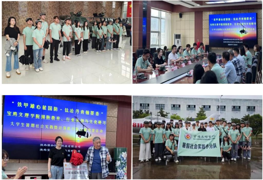 为凝心聚力新时代,昂扬奋进新征程,宝鸡文理学院计算机学院开展"铁甲雄心献国防,钛冶丹青翰墨香"爱国主题教育暑期社会实践小分队。2024年7月8日,计算机学院从学校出发,前往本次社会实践活动目标地保和防务国防教育基地,由计算机学院团总支负责人张显扬和指导老师朱丽叶带领计算机学院四十余位学生参加活动。