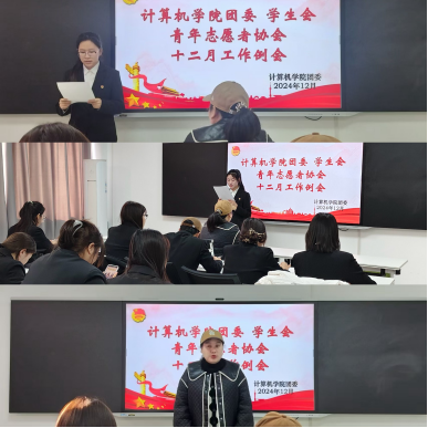 12月24日下午,计算机学院团委在主教楼509教室召开了十二月学生干部例会,学院团委书记于乐、团委学生会及青协主要学生干部参加了此次会议。