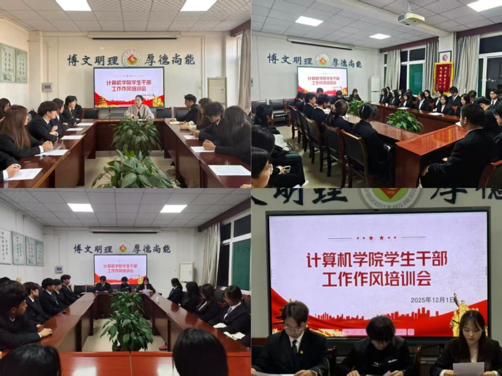 2025年12月1日下午,计算机学院在石鼓校区主教楼518开展了以“深学贺信精神,勇担青春使命——筑牢政治根基,擦亮服务底色”为主题的学生干部培训活动,计算机学院团委书记高婧婷、团委学生会及青年志愿者协会主要学生干部参加此次培训。