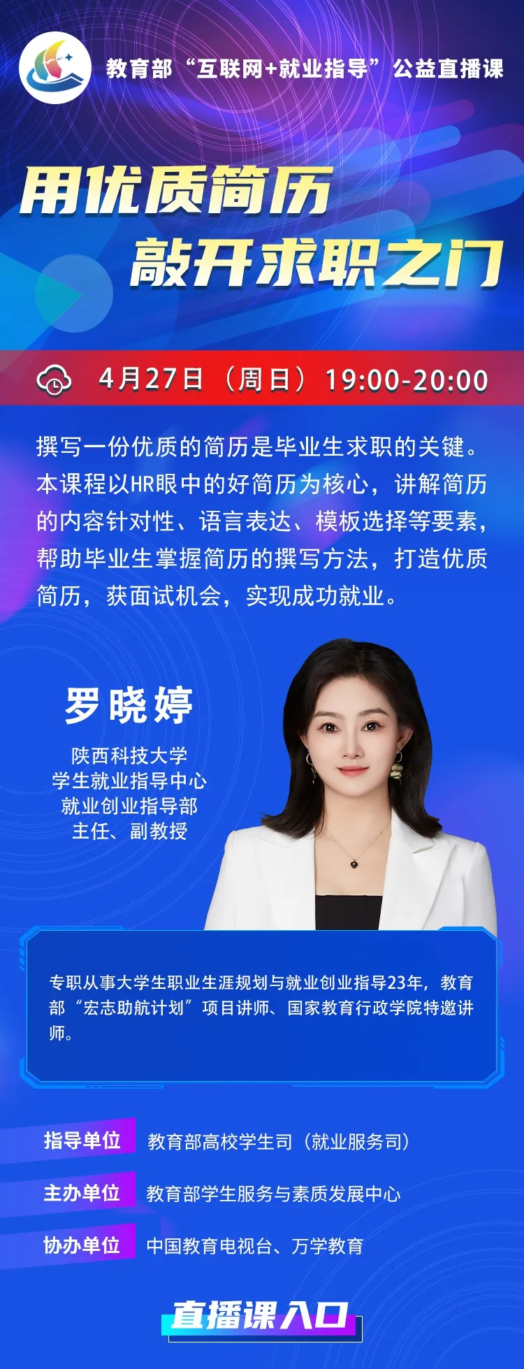 课程预告 | 教育部“互联网+就业指导”公益直播课:用优质简历敲开求职之门